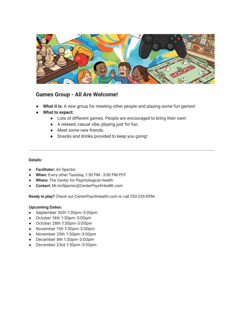 Click HERE to see a calendar of all of our upcoming groups and events.